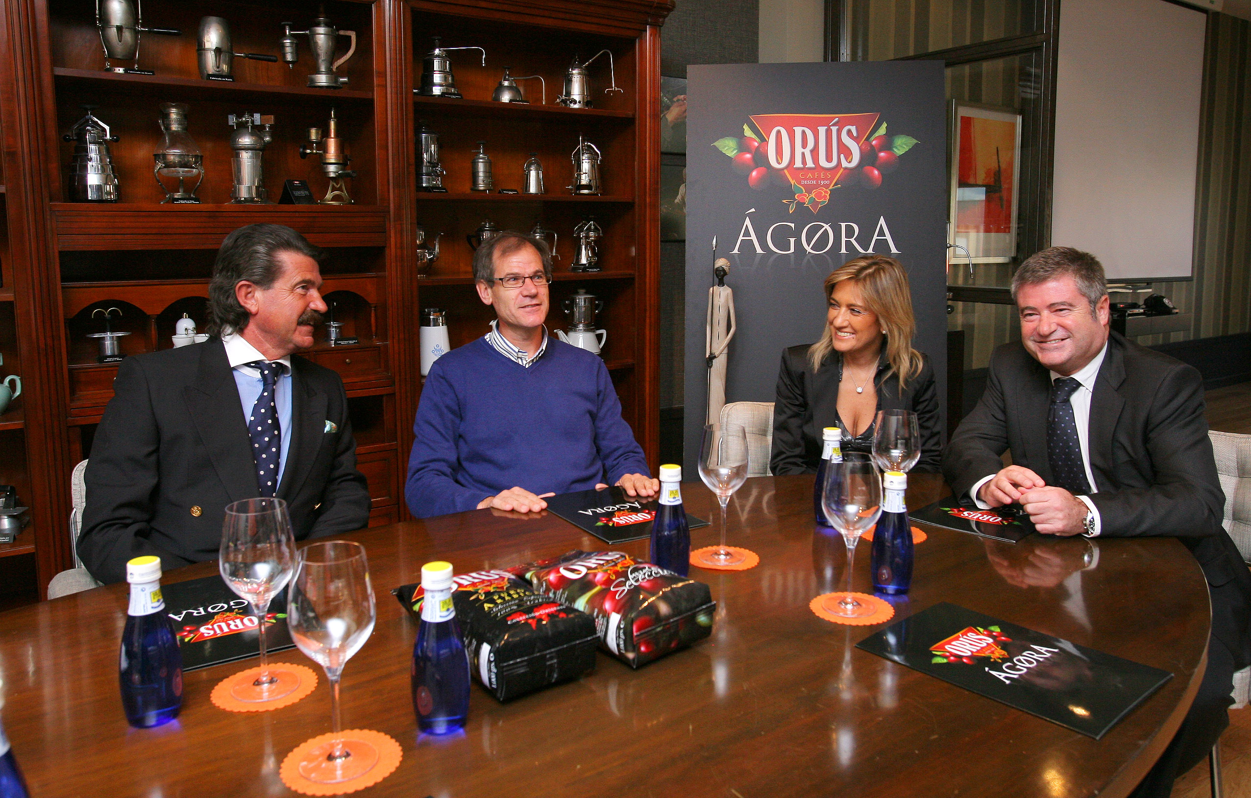 En la imagen, Abel Antón en una reciente visita a Ágora Cafés Orús, junto al Consejero Delegado de la firma, José María Marco, y los responsable de Ágora, Javier Marco y Marisa Beltrán.